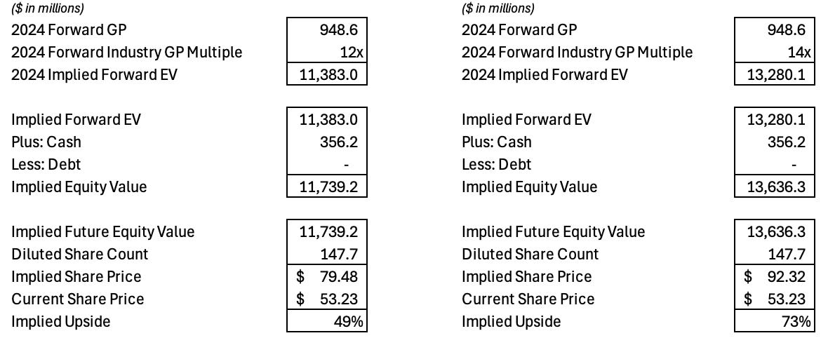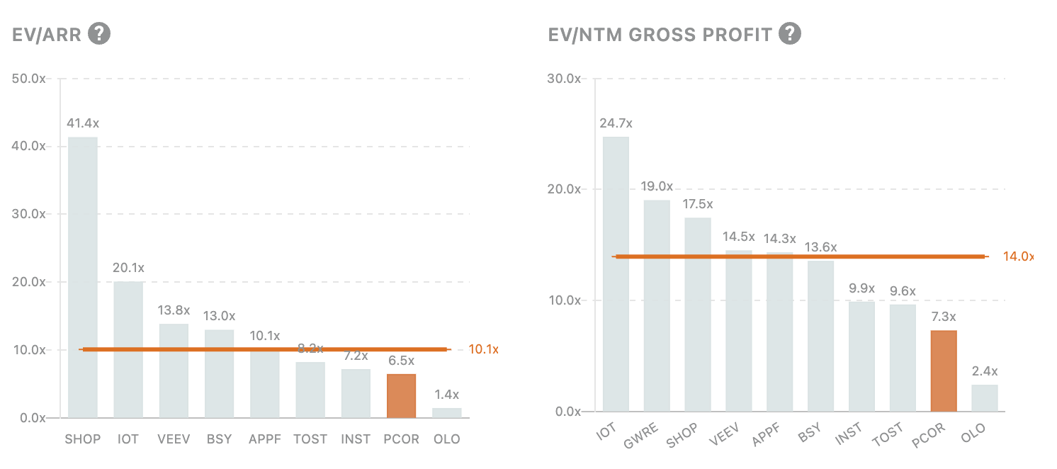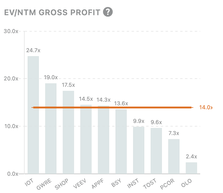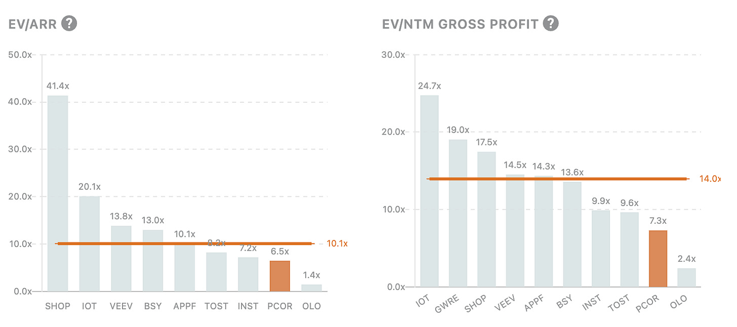 For the price target of Procore, I wanted to do a very rudimentary valuation based on a GP multiple. I took a baseline multiple from a lot of high-growth vertical software companies.